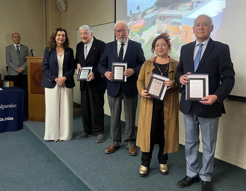 Asimismo, se distinguió a docentes y funcionarios por 20 y 30 años de servicio, ascensos de jerarquía académica, exdirectores de escuela –desde 1955 a 2018– y a quienes se acogieron recientemente al incentivo al retiro, en un gesto de gratitud por su aporte a la trayectoria institucional.