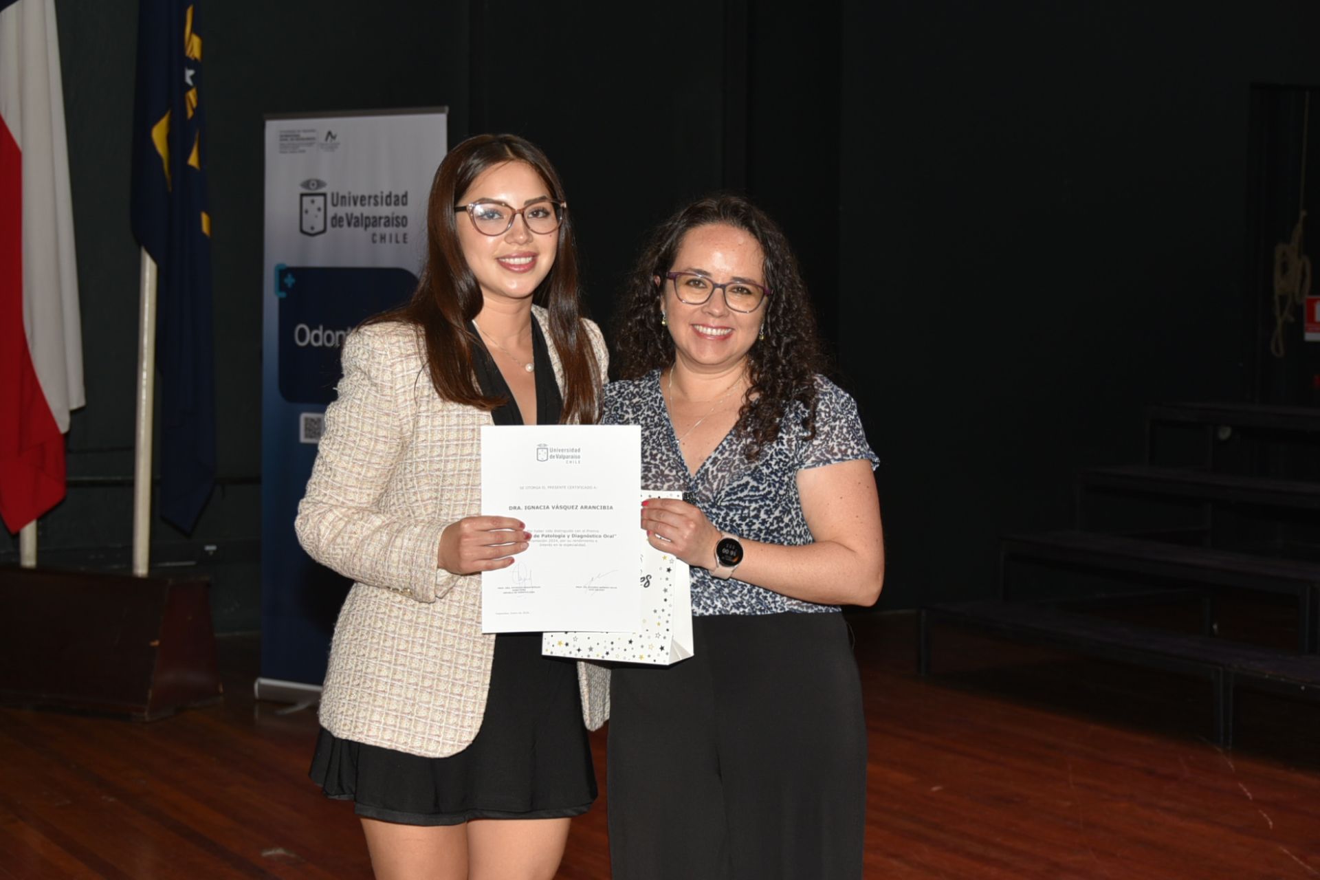 La jornada incluyó el juramento profesional, momento central que consagra el compromiso ético de las y los nuevos cirujanos dentistas con la salud de las personas y el bienestar de la comunidad. Asimismo, se presentó un registro audiovisual que recorrió hitos de su etapa formativa, destacando el valor de la experiencia universitaria más allá del aula.